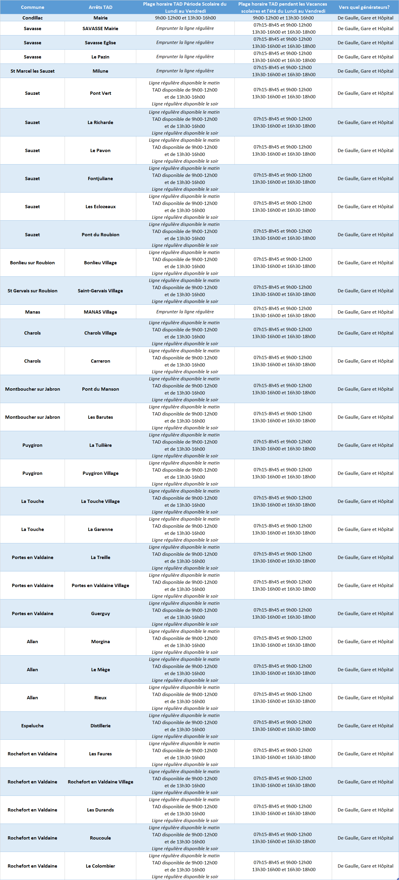 Il est renforcé en période de vacances scolaires pour les communes ne bénéficiant pas d’offre vacances, pour permettre le transport des actifs en heure de pointe (7h15-8h45 et 16h30-18h00).